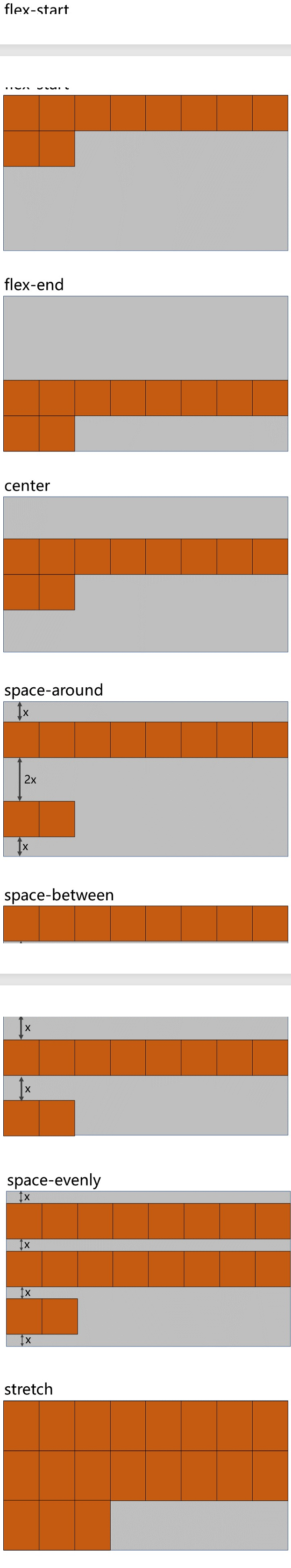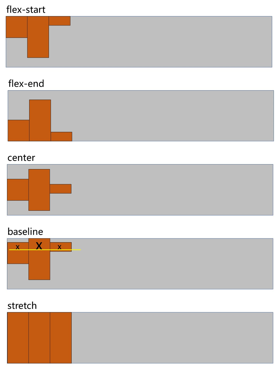 默认值为 auto,表示继承父元素的 align-items 属性。其他属性值与主侧轴对齐方式的属性值相同