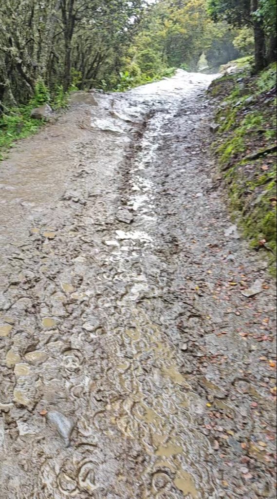 半路还下雨了,路变得很难走,这已经是比较好走的一段路了,因为下山太累了,都没心思拍视频,所以下来的素材特别少。