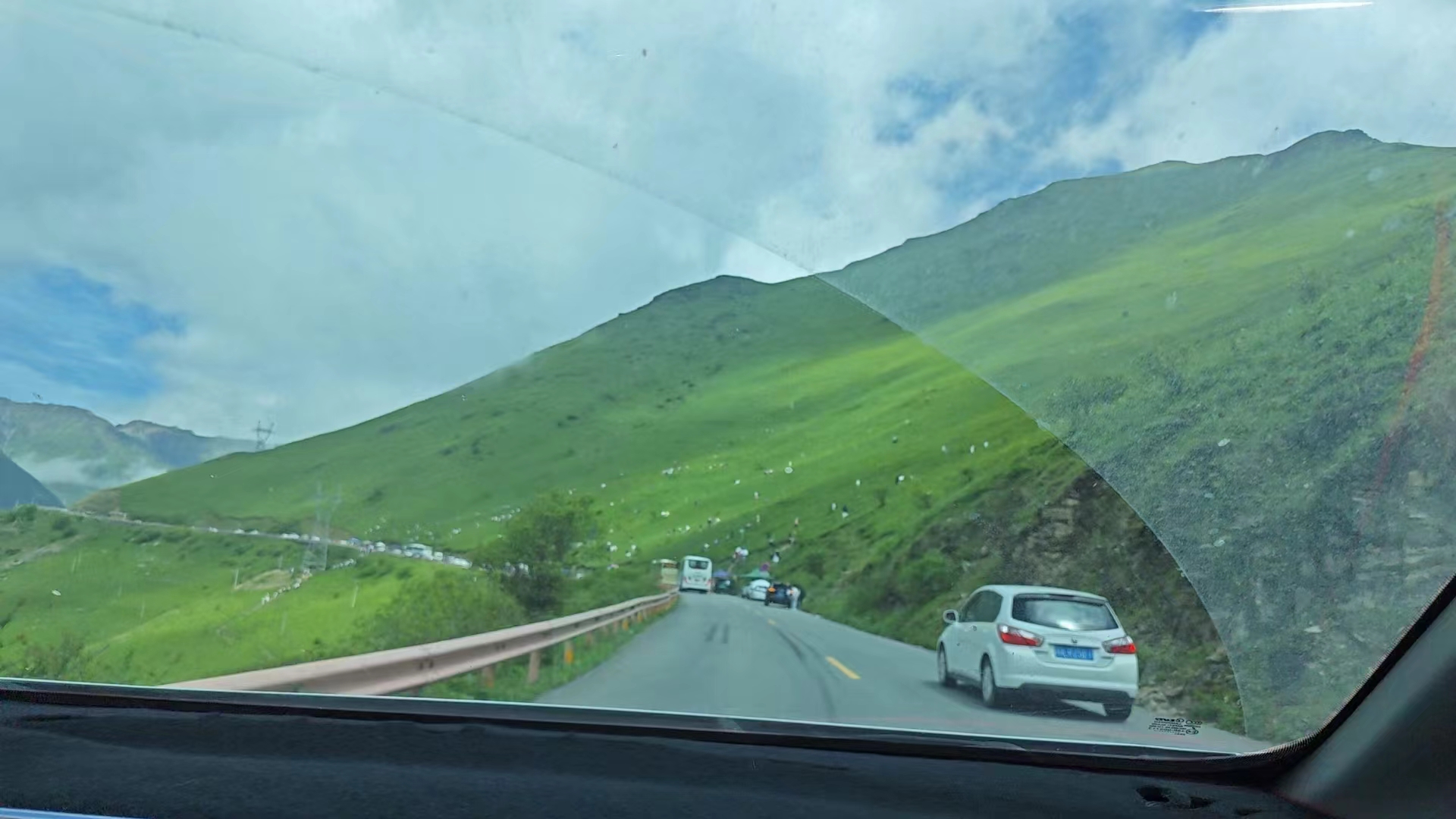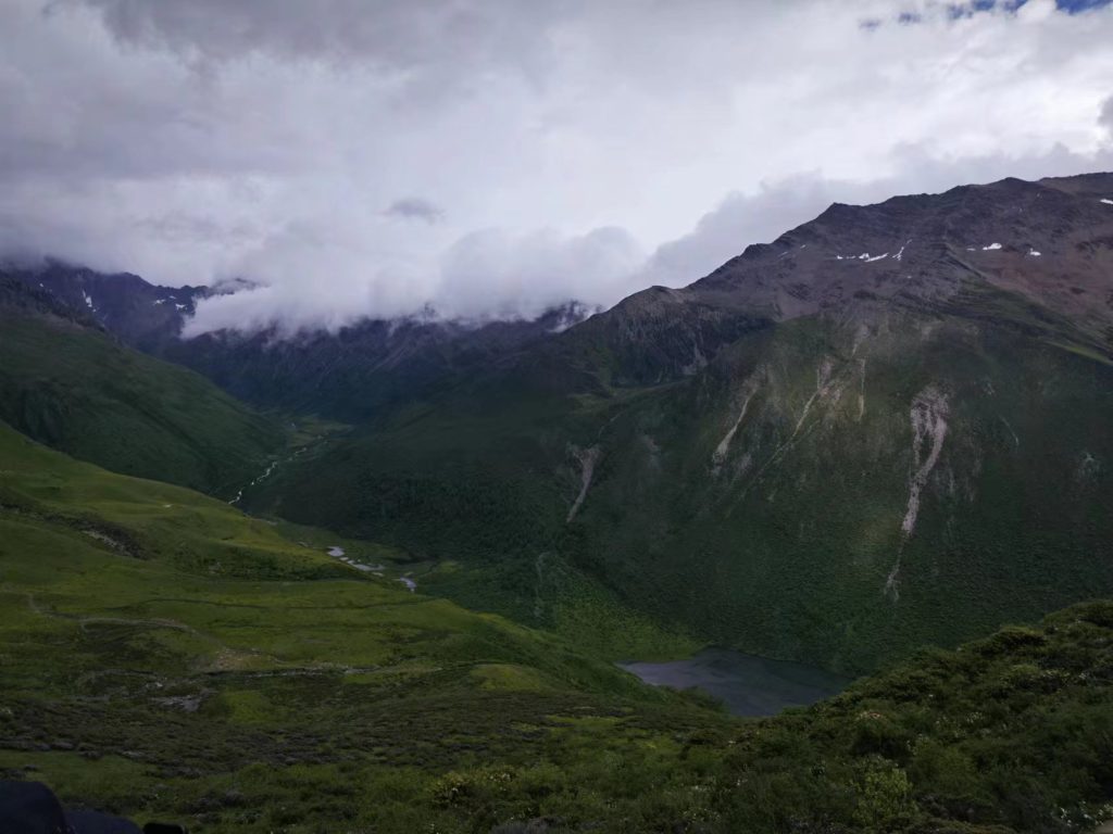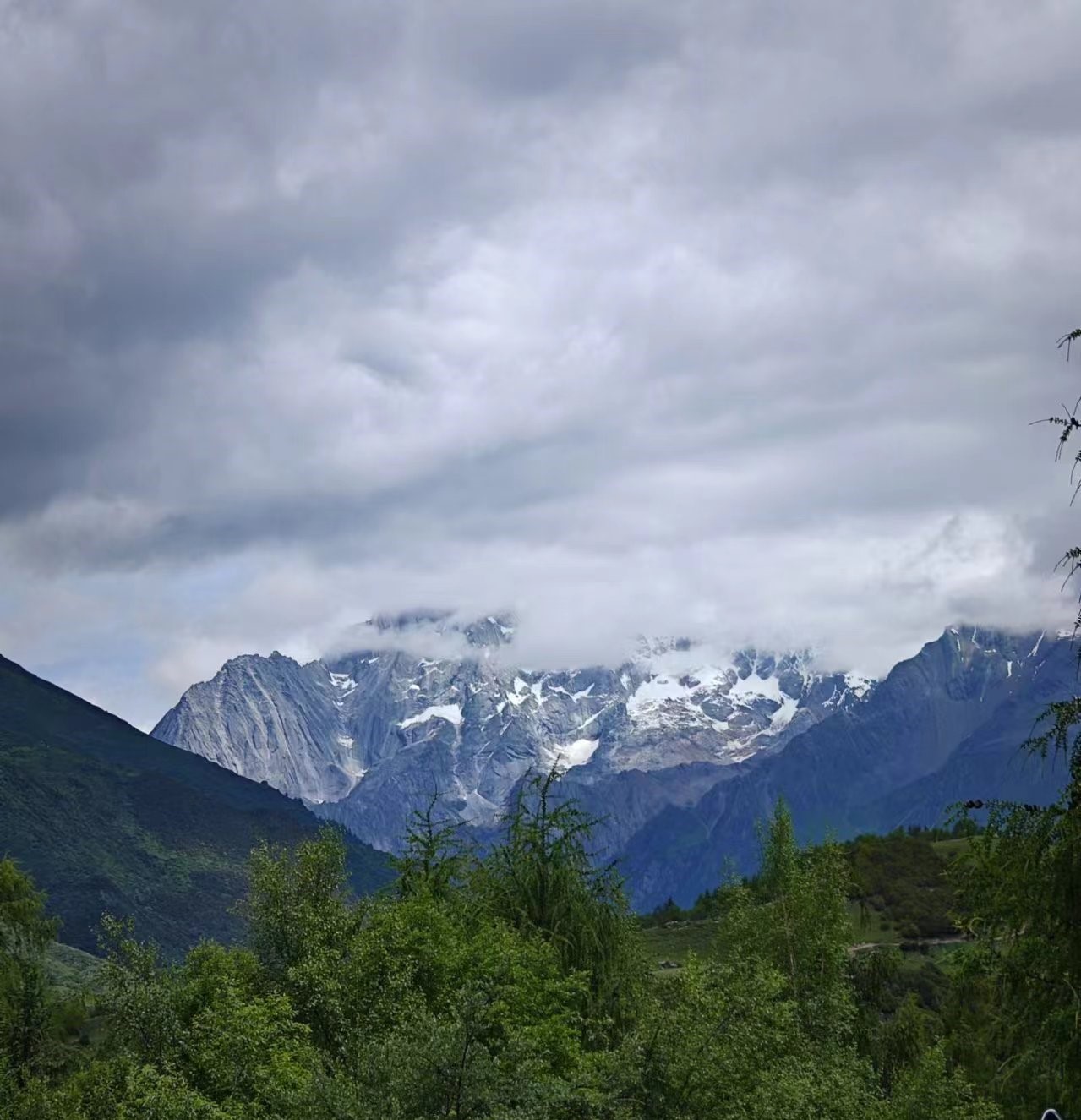 临近目的地,这个角度可以看到雪山,停车拍了个照片,虽然山峰被云遮挡了,但也好兴奋。