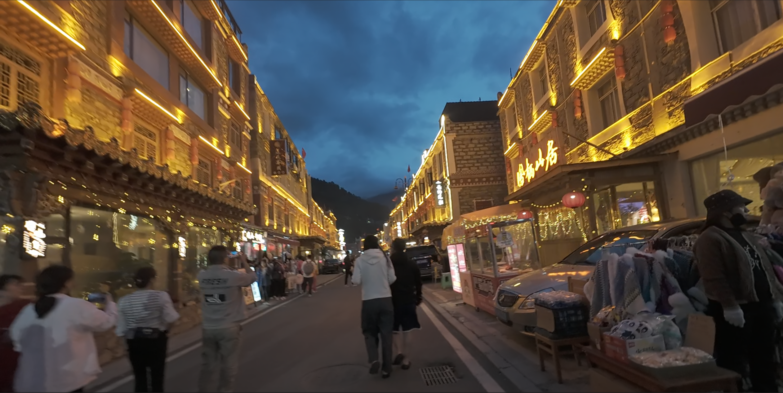 为了适应海拔,出来转转,四姑娘山镇的夜景,还有表演。