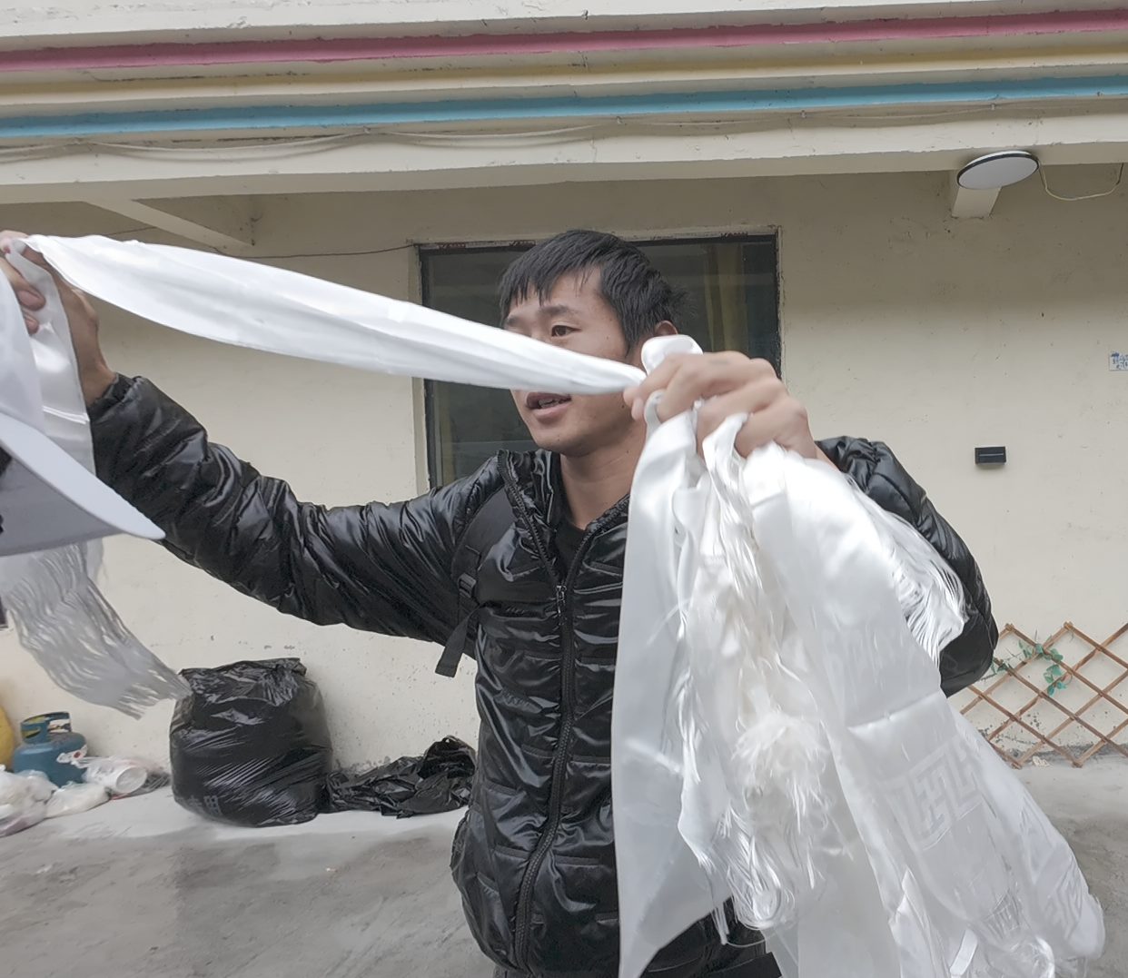 准备出发,向导给我们献哈达,扎西德勒(欢迎、祝福吉祥)。