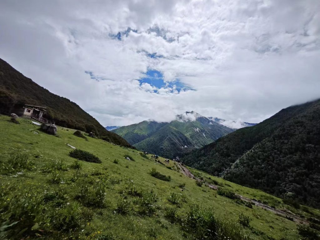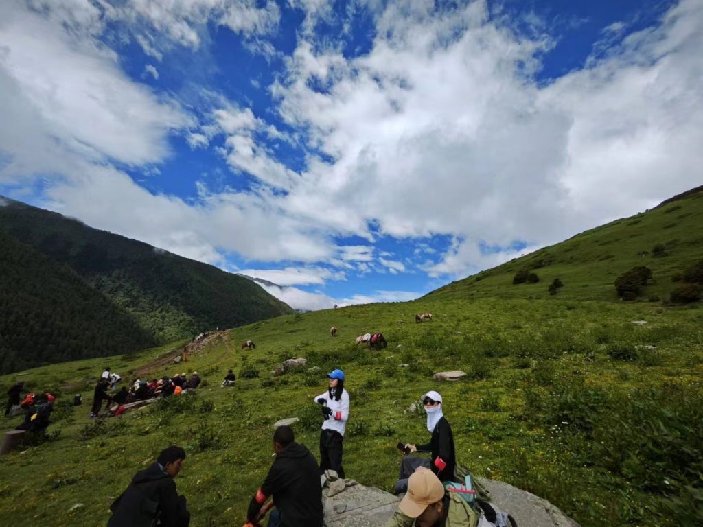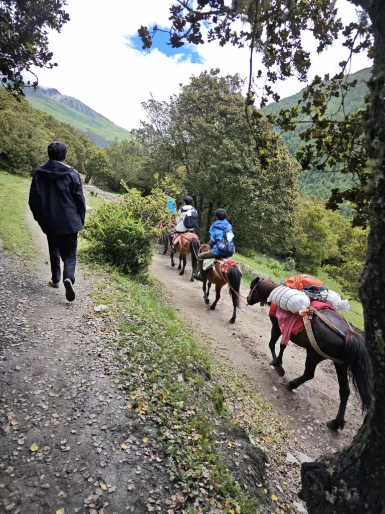 沿途景色不错,蓝天草地,还可以骑马,就是有点小贵,还是老实走上去吧。