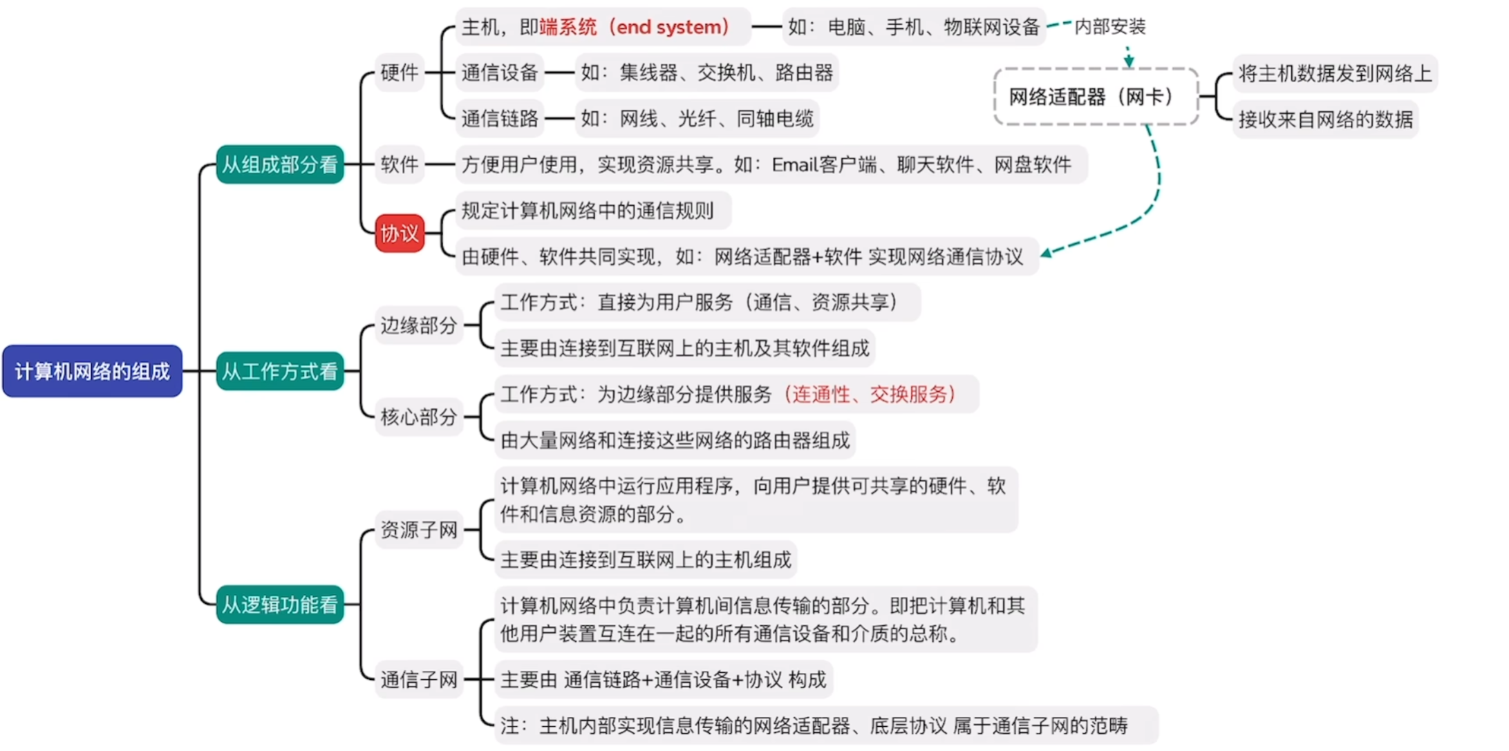 网络:若干节点和链路互联形成网络,节点可以是计算机,集线器,交换机等